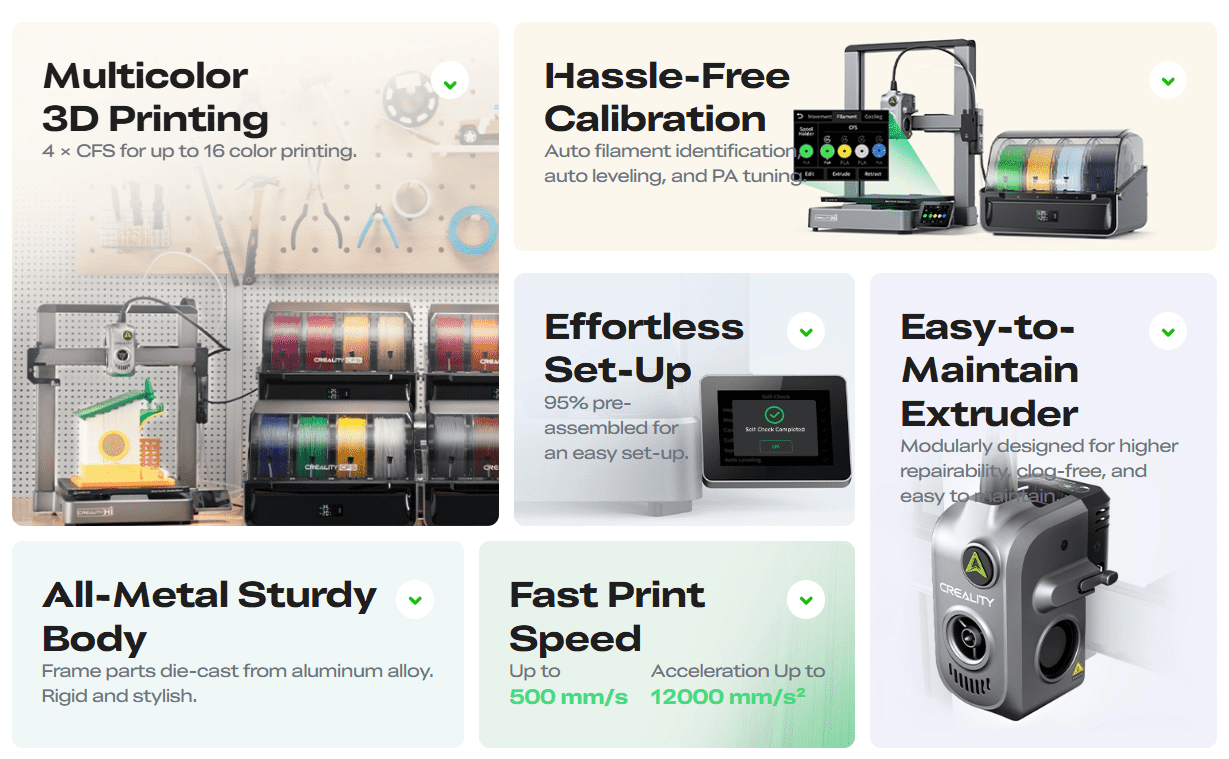 Creality Hi Combo 3D Yazıcı, çoklu filament desteği ile tasarımda sınırları kaldırıyor. Kullanıcı dostu yapısı ve gelişmiş özellikleri sayesinde profesyonellerden hobi meraklılarına kadar her seviyeden kullanıcı için ideal bir çözüm sunuyor. Üstün baskı performansı ve malzeme çeşitliliği sayesinde projelerinize renk ve detay katma imkanı tanır.